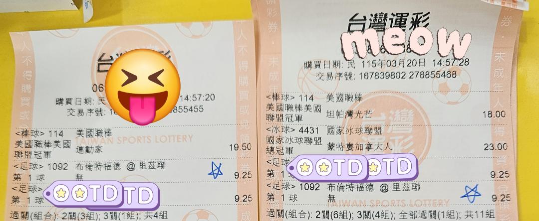 另外1場無球遮住是為了不想見光死,串了比較多張,串了日本職棒,冰球,NBA冠軍,所以沒有亮出來。 |