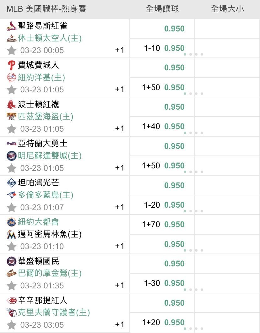 MLB >> 3/23 美棒熱身賽初盤(預祝過盤)
