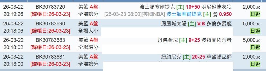 >> 3/23日NBA1場參考(早上2過2,國際 近5日 17過12,運彩 主推連過5日)