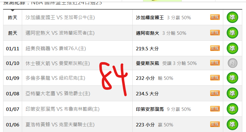 NBA >> 國際盤主推榜第一 day22 21勝1敗 推一場