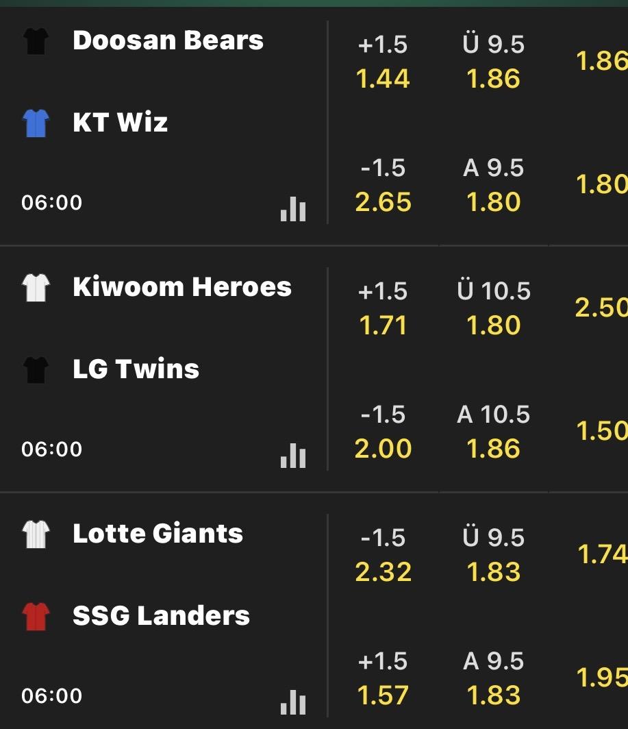 韓國職棒 >> 2026.03.23 韓棒KBO 中午開戰 盤口