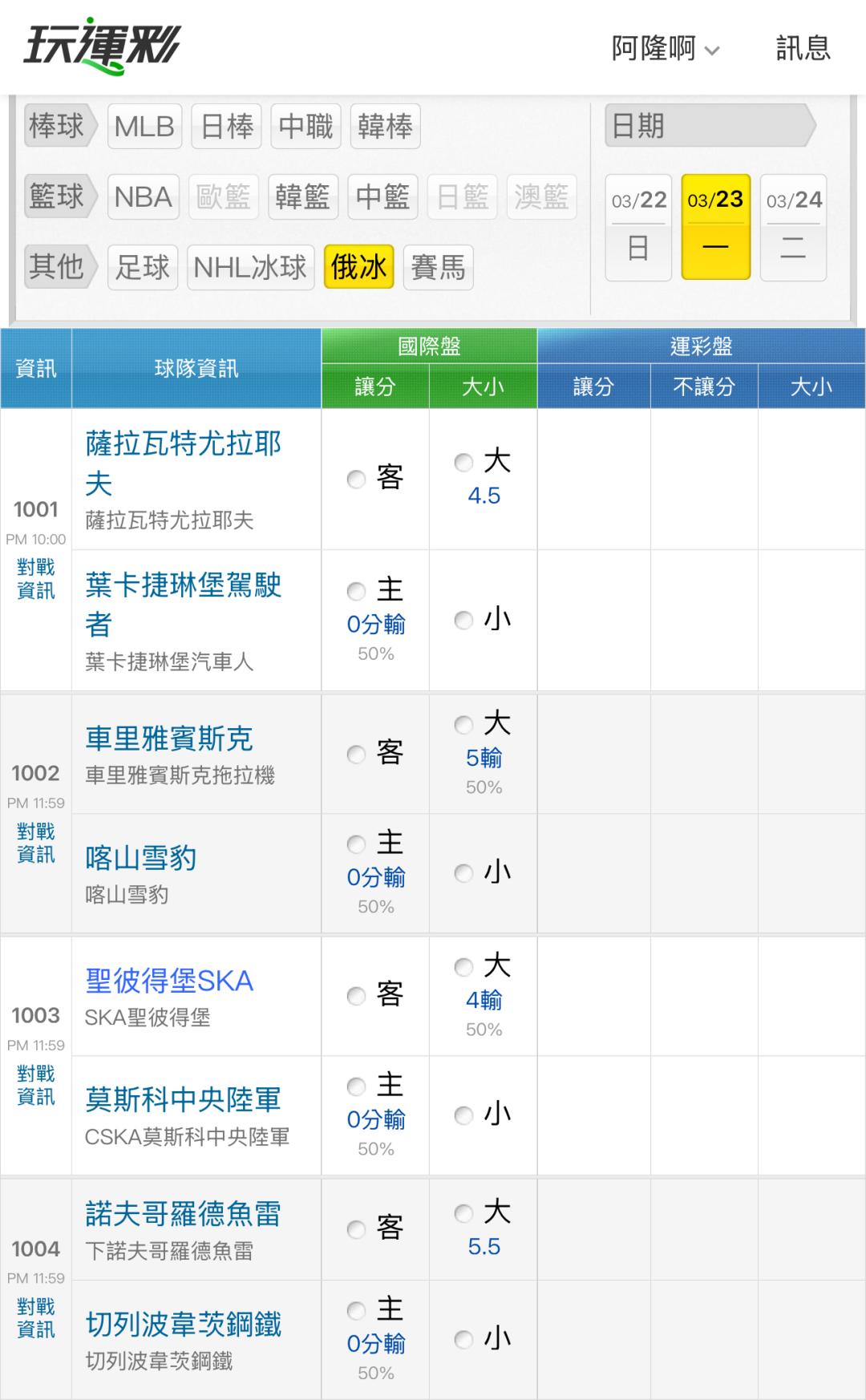俄羅斯冰球 >> 3/23🏒🌟🎯《俄冰盤口》