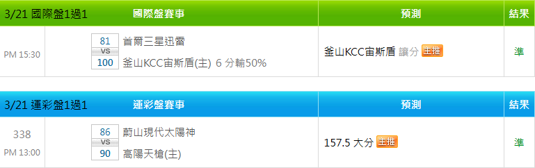 韓國職籃 >> 3/23 韓籃推薦【國際盤近14日 14過11】【小叮嚀有注數推薦】【免費場歡迎參考】【今日特價】