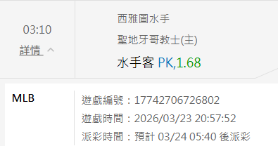 MLB >> 3/24 MLB推薦【國際盤連贏6天 12過12】【國際主推信心度高】【小叮嚀有注數推薦】