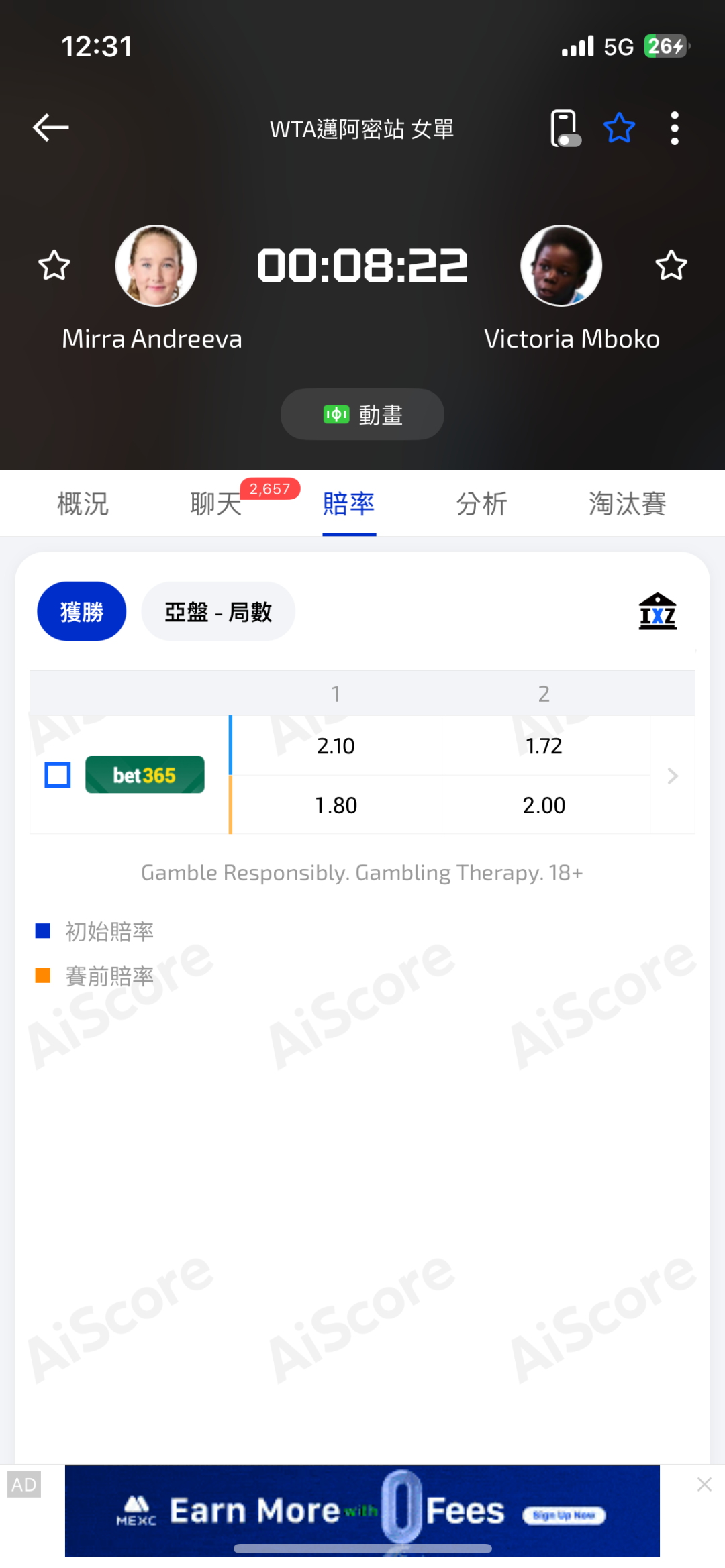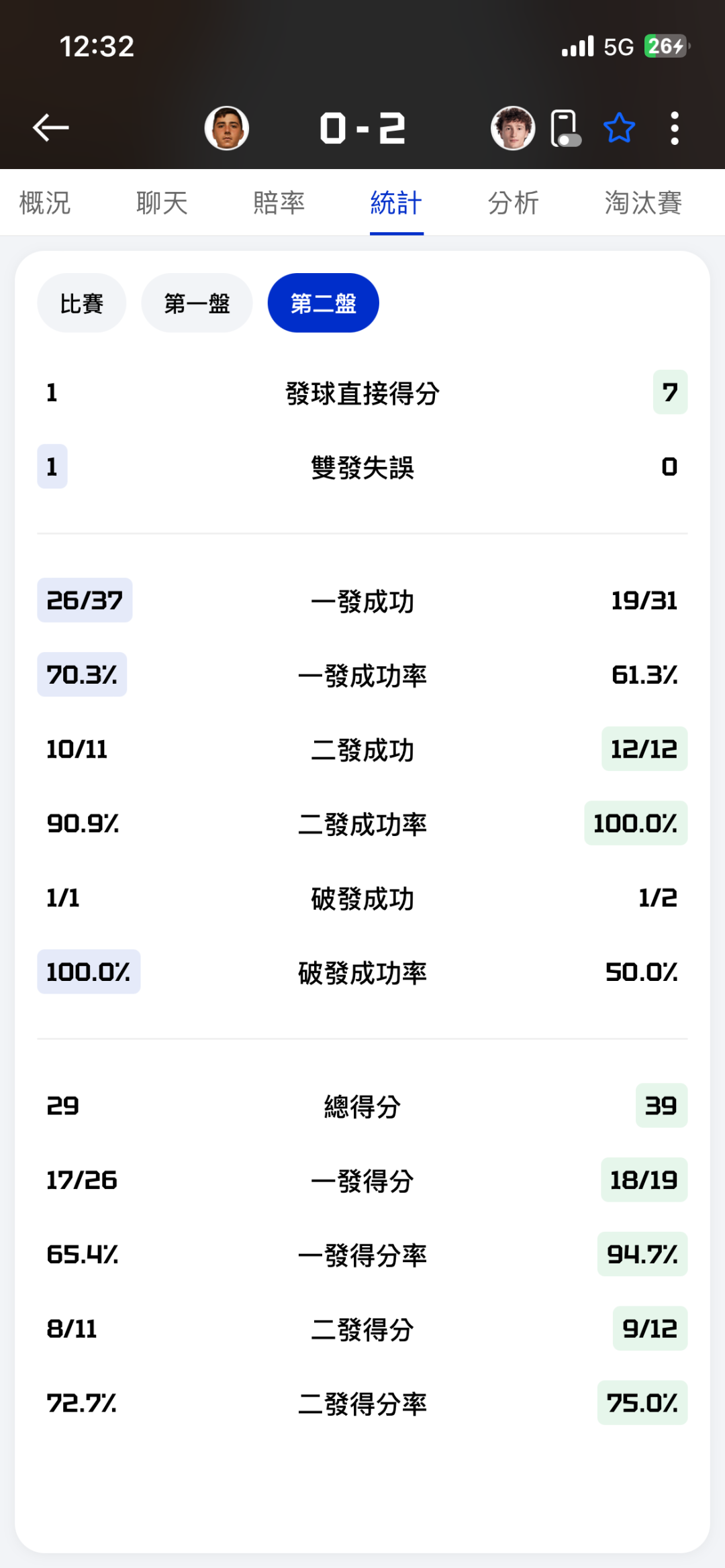 上完馬上拿到破發點 對面又二發 結果不把握