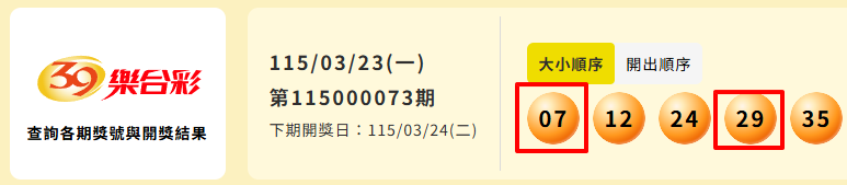 彩球 >> (03/23) 今彩539:39樂合★中1組2星★