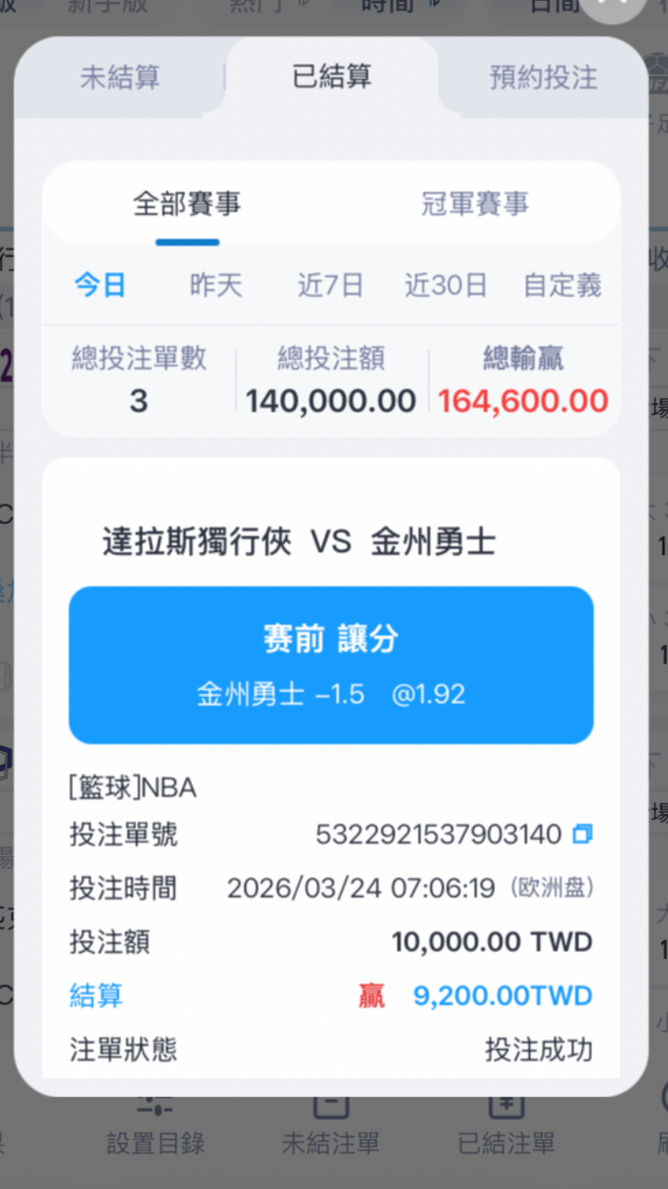 目前(3/24 07:00)盤開勇士2+75,獨贏盤水位勇士0.850,獨行俠0.&nbsp...恕刪