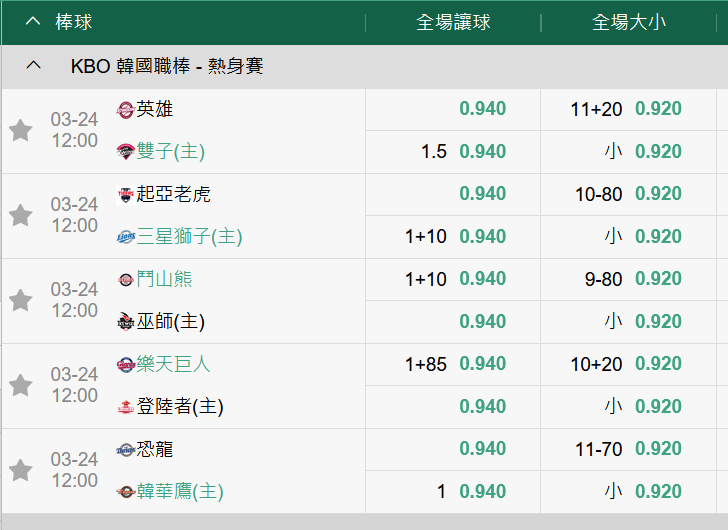 韓國職棒 >> 3/24【第41周勝率第一名】初盤分享+登陸者受讓推薦!