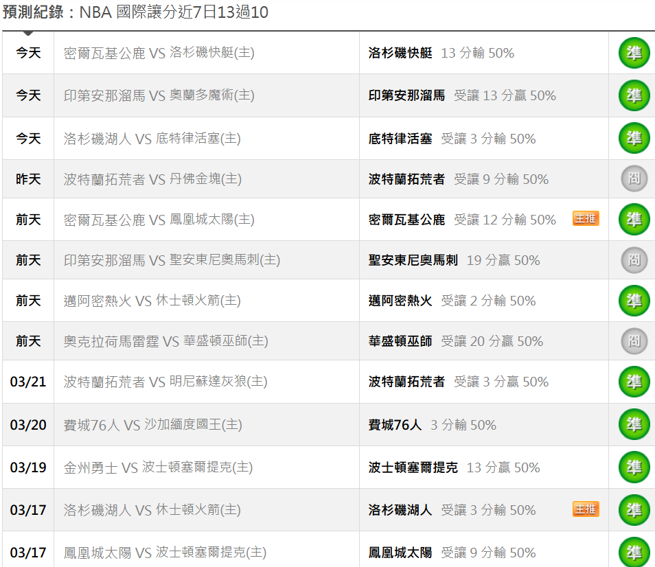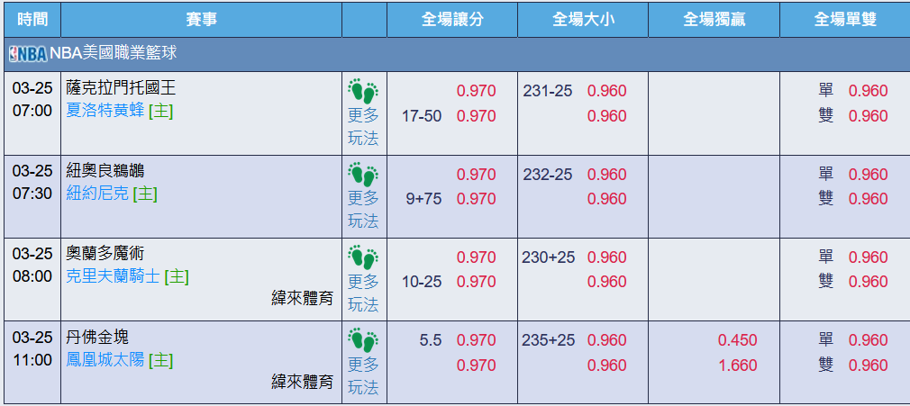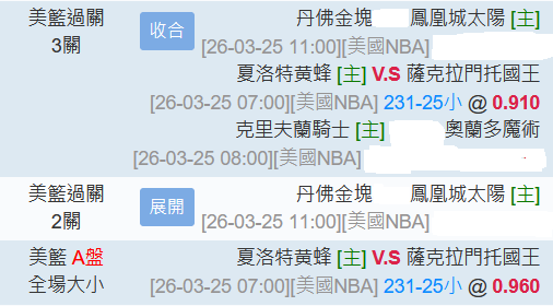 NBA >> 3/25【運彩主推連過6天】【國際 主推近13日過10】美國星期二小分版路推薦!