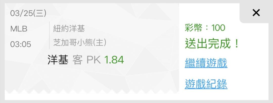 >> 3/25 主推近5過4 推一場免費給各位 洋基vs小熊場