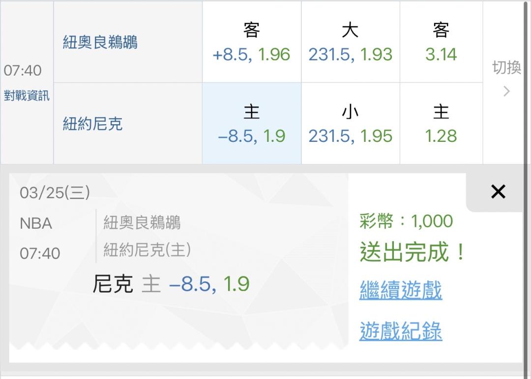 | 運彩盤賽事 |