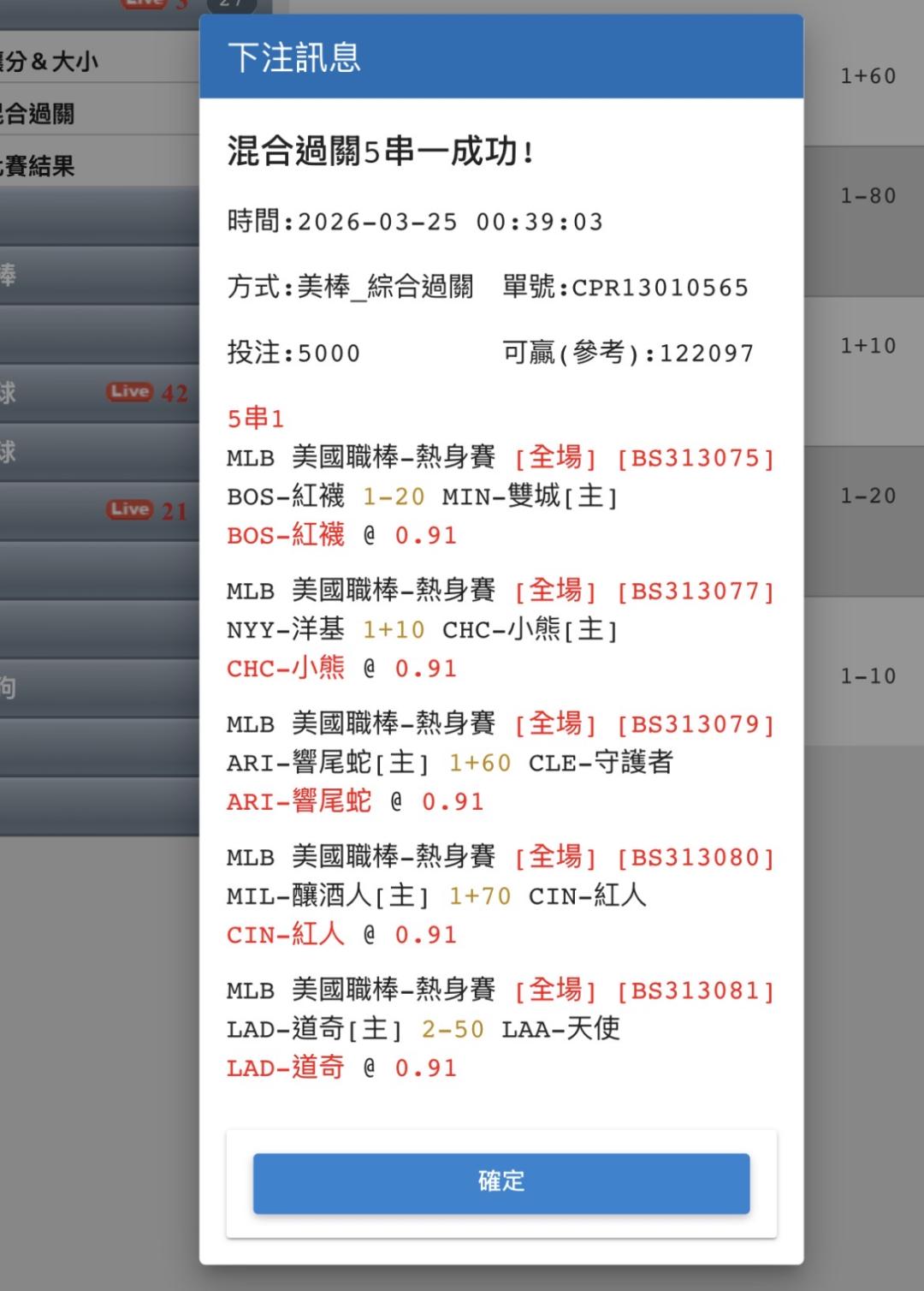 | 運彩盤賽事 |
