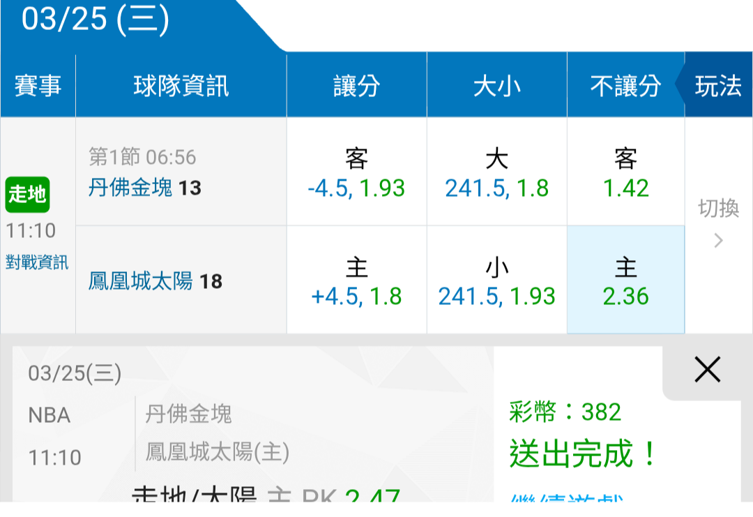 運彩盤連贏4天12過9