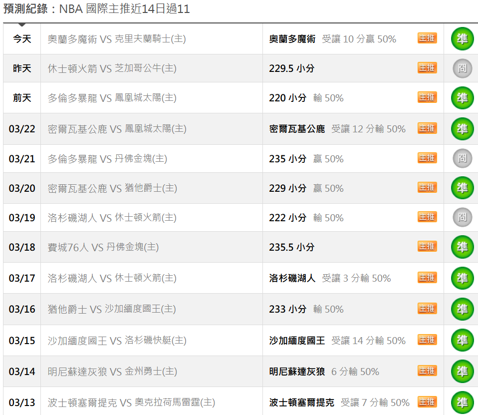 NBA >> 3/26【國際 主推近14日過11】【本月國際主推17勝8敗=68%】美國星期三讓分版路推薦!