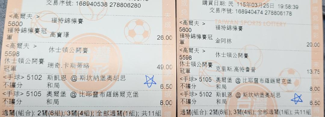 過了1場6.5倍,高爾夫球參考,今天晚上開賽。
