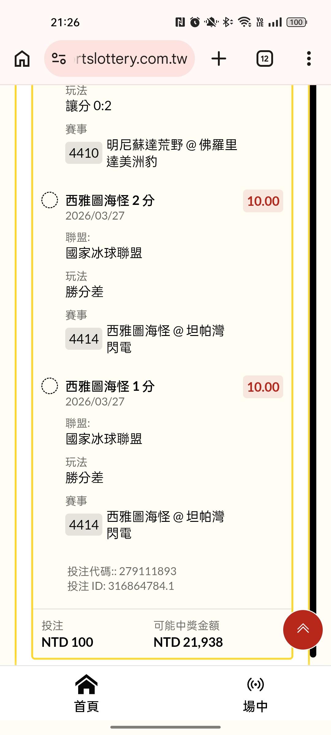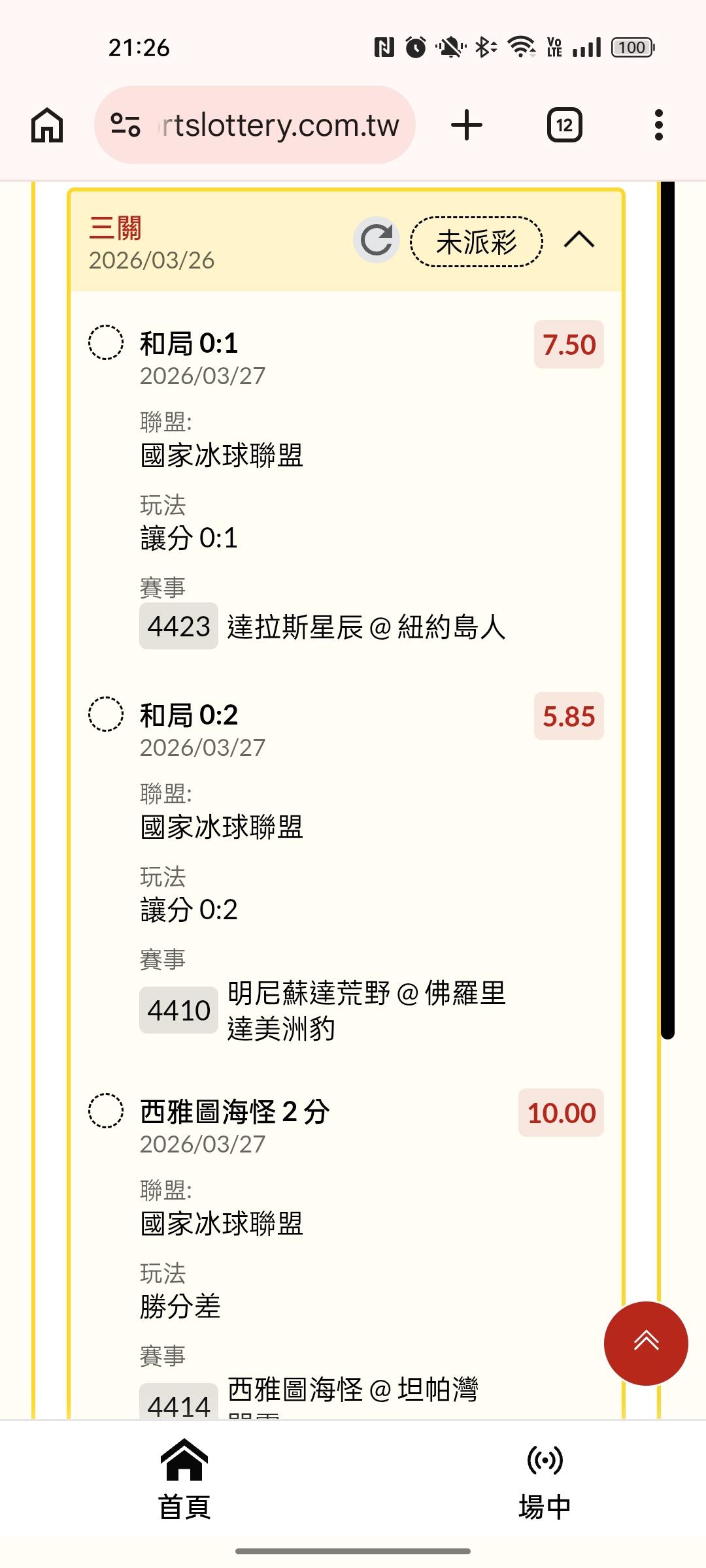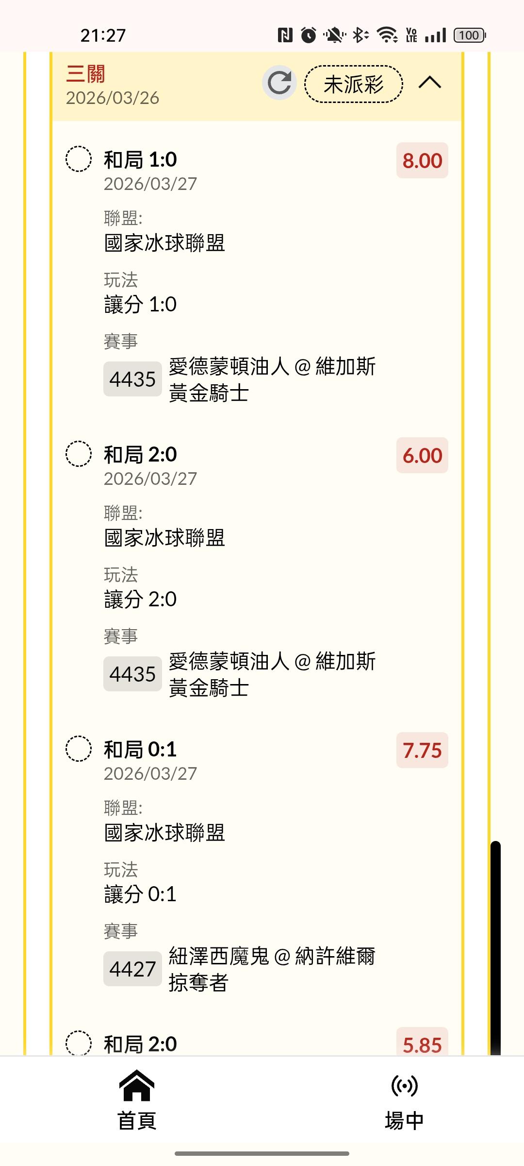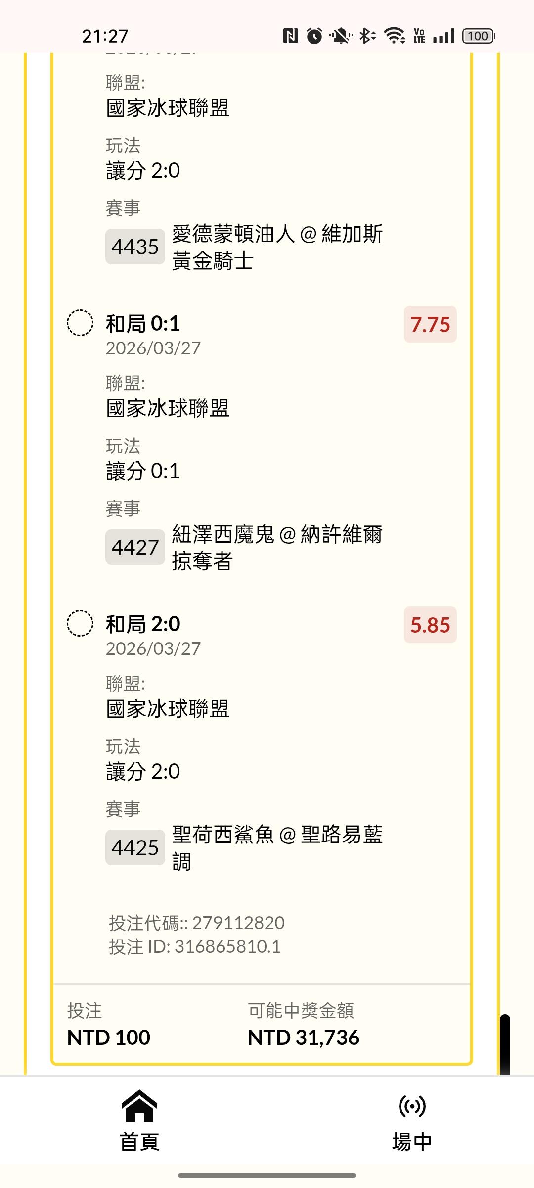 過關炫耀 >> 冰球勝分差3*1........132倍