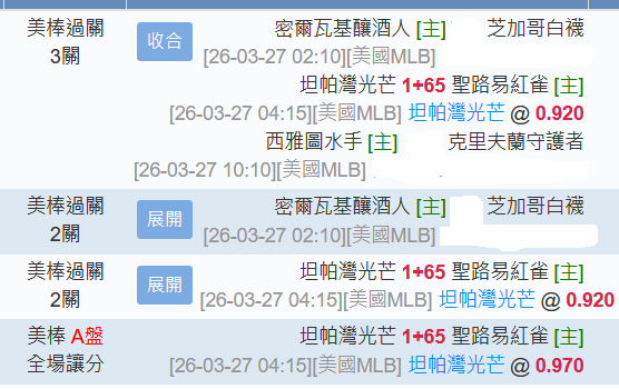 MLB >> 3/27【國際主推過關】光芒讓分推薦!!