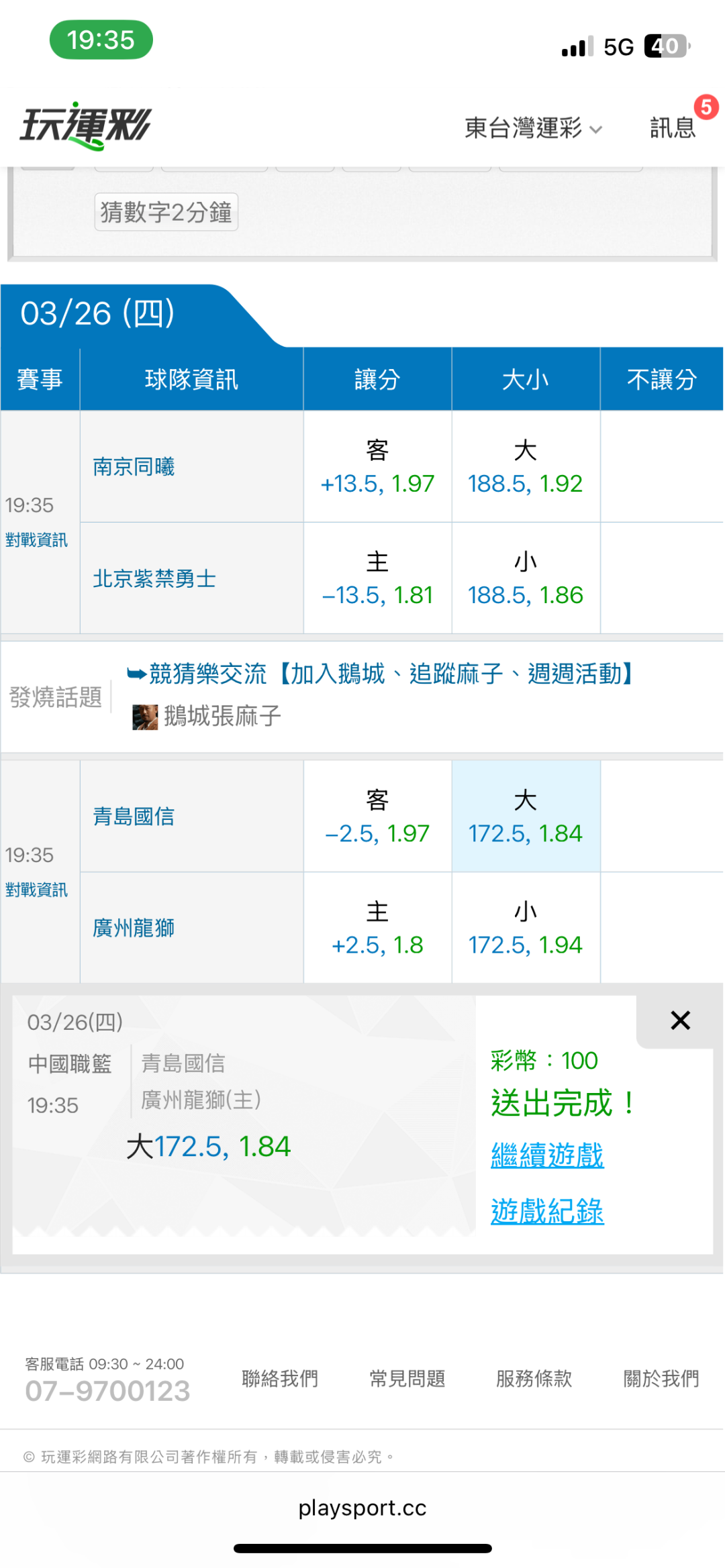 中國職籃 >> 3/26東台中籃國際盤【連贏9天36過26】主推信心滿滿(貓場) 特價79-拼中籃國際盤連贏10天