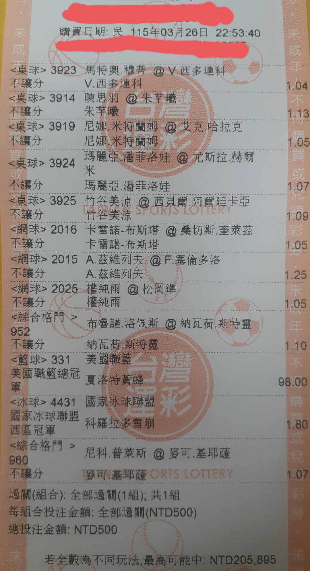 乒乓球 >> 甲霸桌球公益單,412 倍,參考用