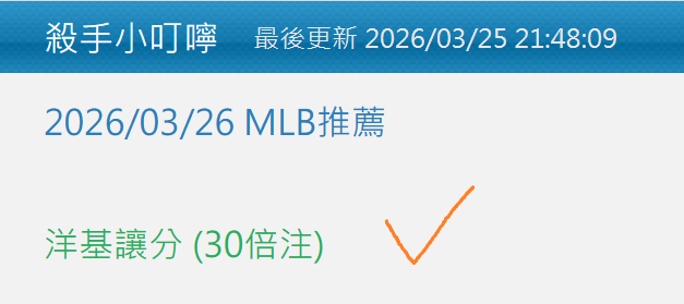 MLB >> 3/28 MLB推薦【國際盤近10日 21過17】【今日國際盤 2過2】【昨日雙盤 2過2】