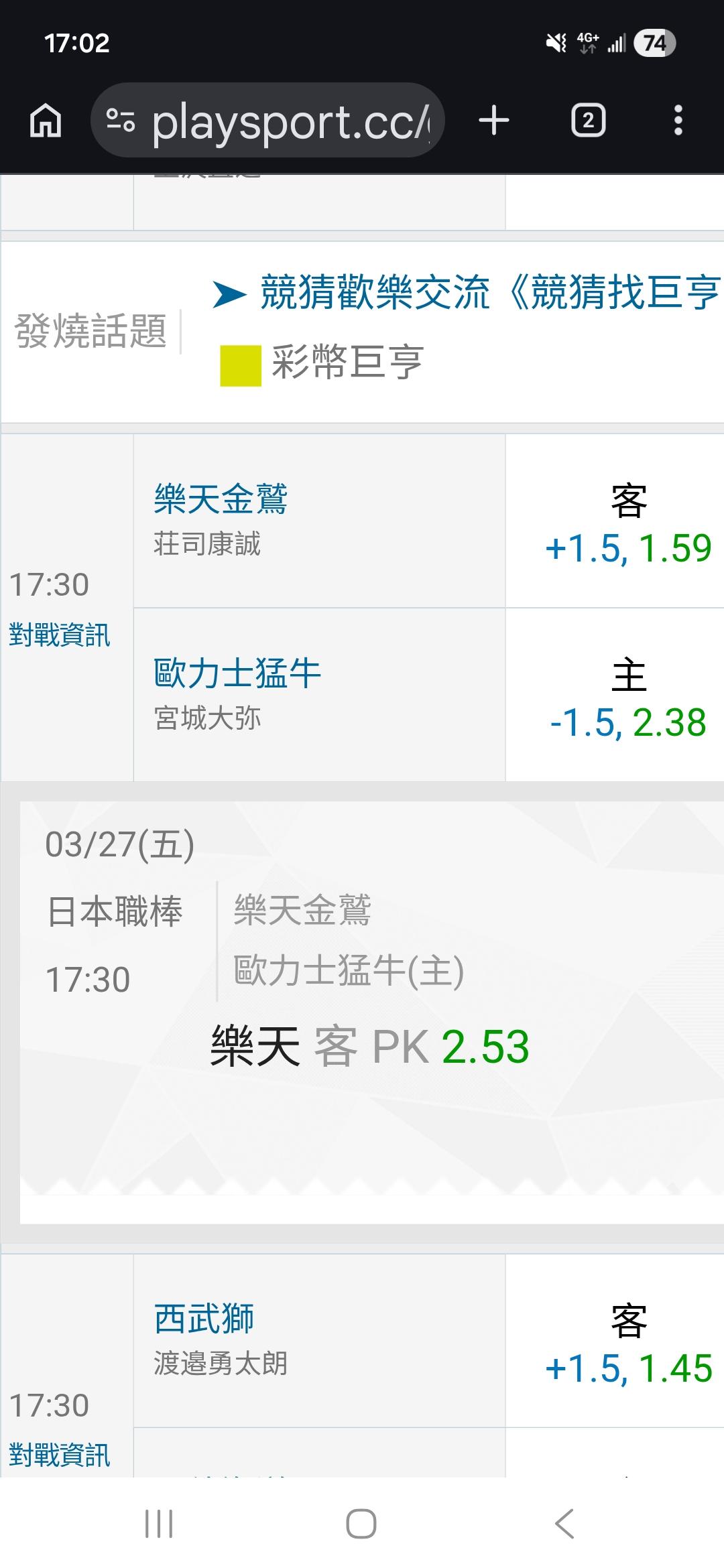 | 運彩盤賽事 |