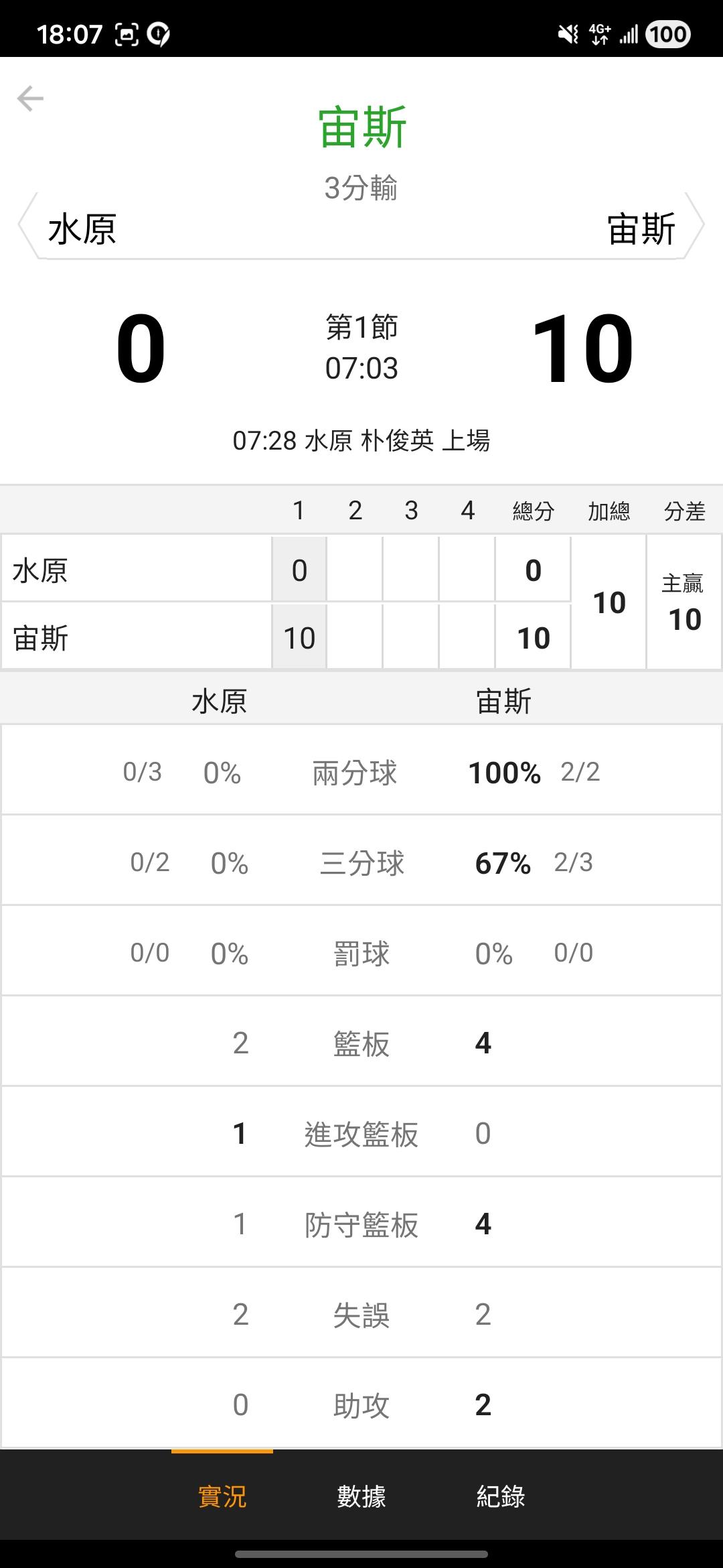 韓國職籃 >> 水原開局直接0:10