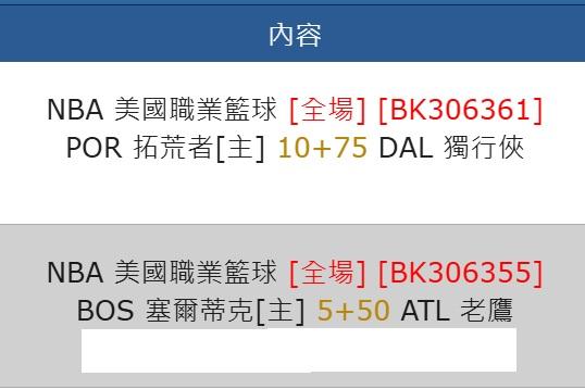 NBA >> 高信心場 二場決勝-[台彩單場 拓荒者VS獨行俠]+[塞爾提克VS老鷹]-有信心 拚全過