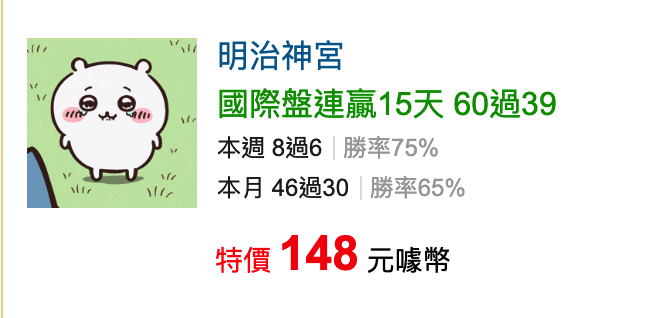 >> 🏇野豬力量注入,賽馬 國際 連贏15天 60過39