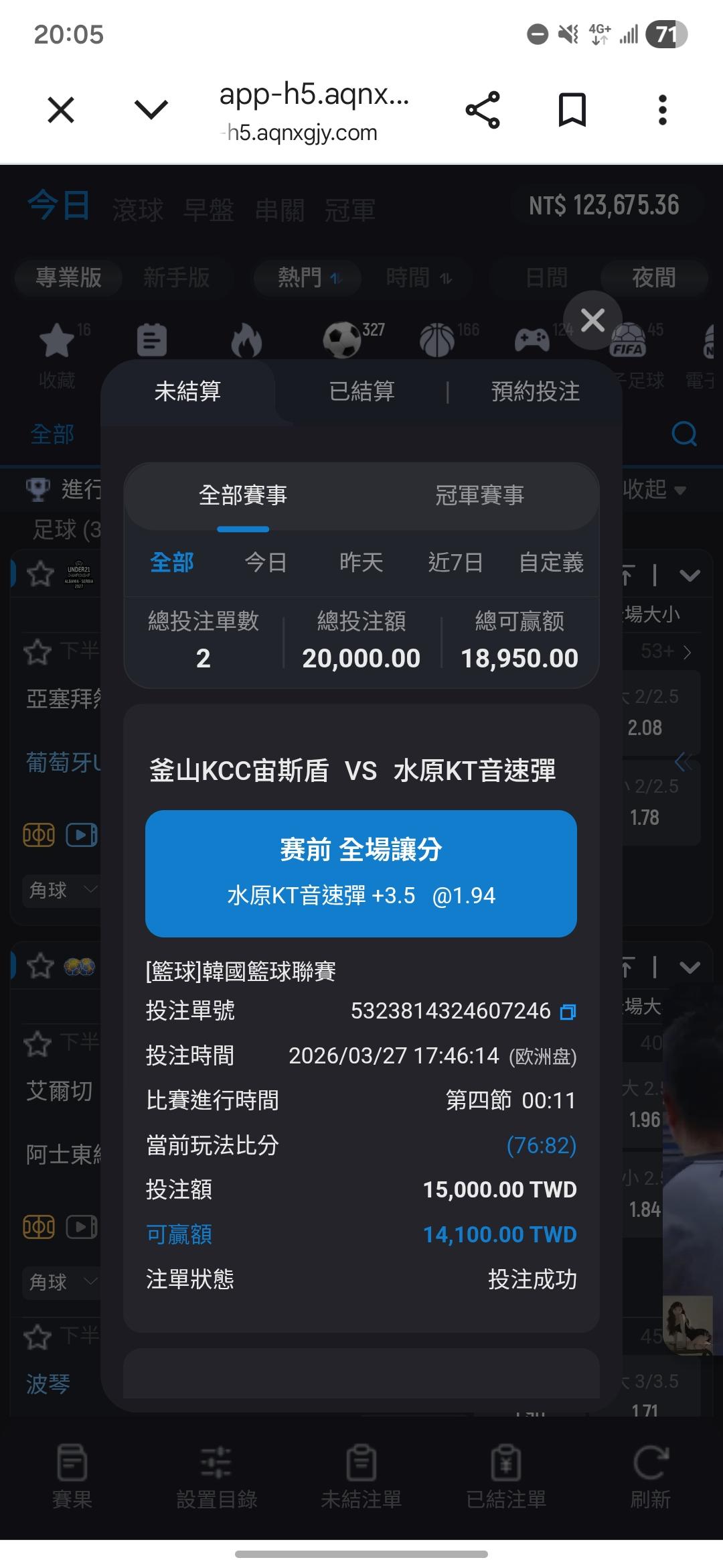 韓國職籃 >> 水原單場+3.5 又收了19000
