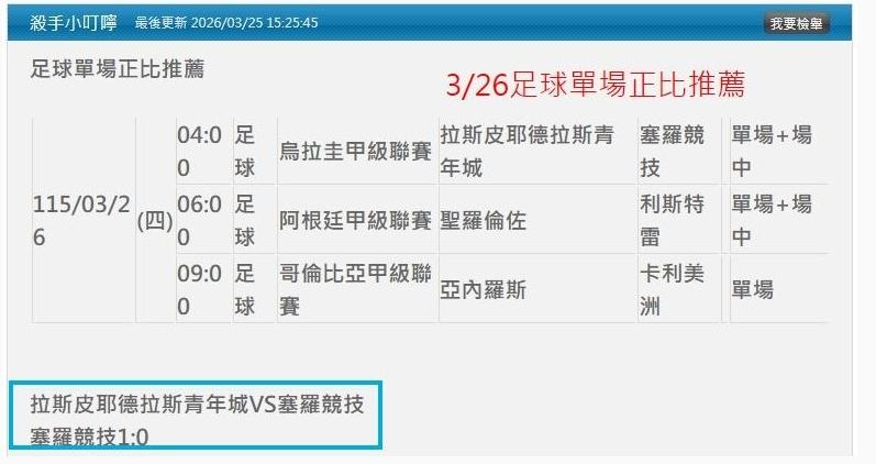 足球 >> 3/28足球 昨天小叮嚀推薦單場:塞羅競技1:0正比順利抓到 小叮嚀有明9場單場正比推薦