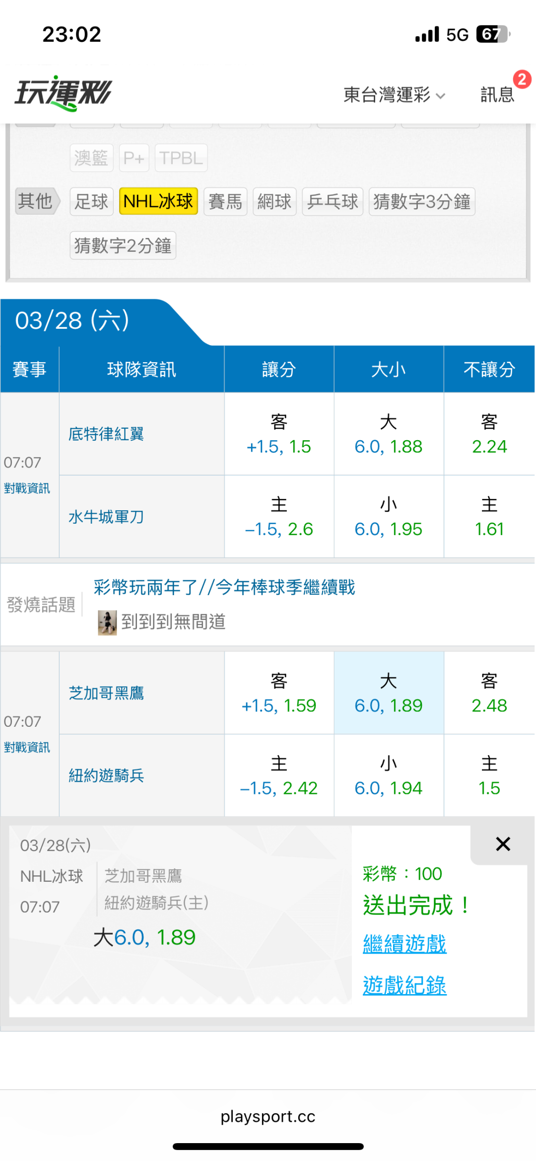 NHL冰球 >> 3/28東台NHL國際盤【近21日贏19日】主推信心滿滿(貓場)特價79 喜歡的跟上東台~