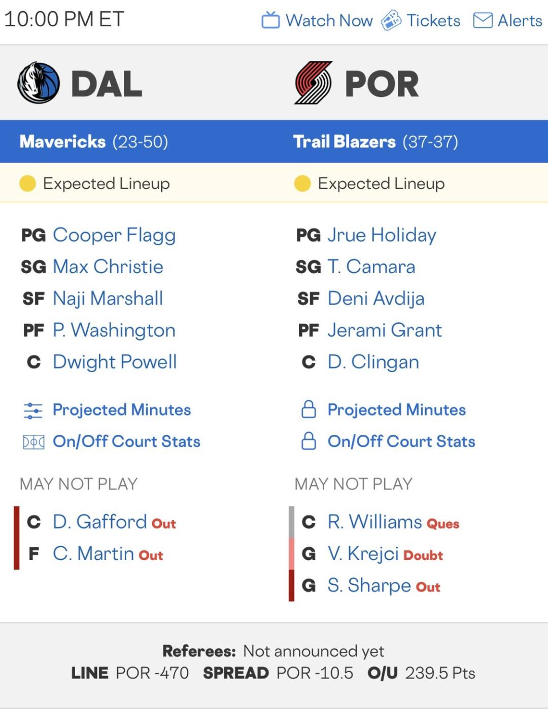 NBA >> 小牛和阿拓目前交手兩次,不含OT一場236一場247,最近拓荒者防守頂天,明天是不是走小更舒服?