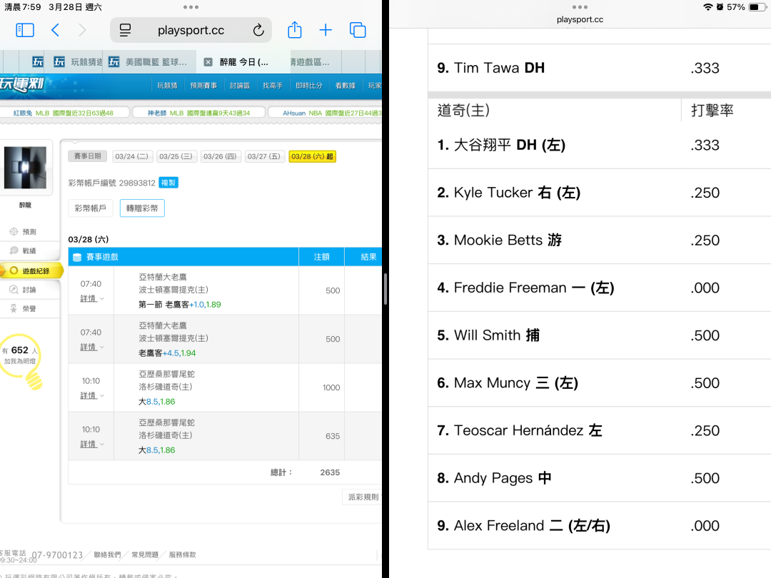 昨天看響尾蛇的後援投手,十分弱,道奇也不怎麼樣⋯⋯