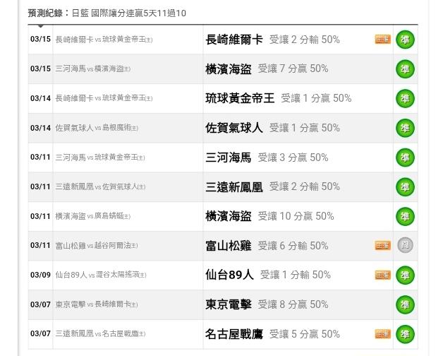 日本職籃 >> ☆ 國際讓分連贏5天11過10~本賽季國際盤總勝率第1名!台灣球員效力的隊伍