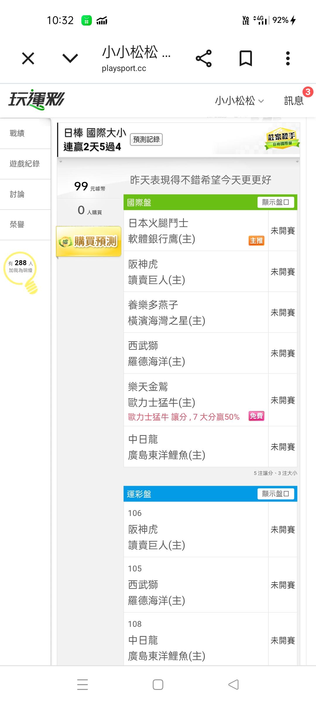 預測賽事