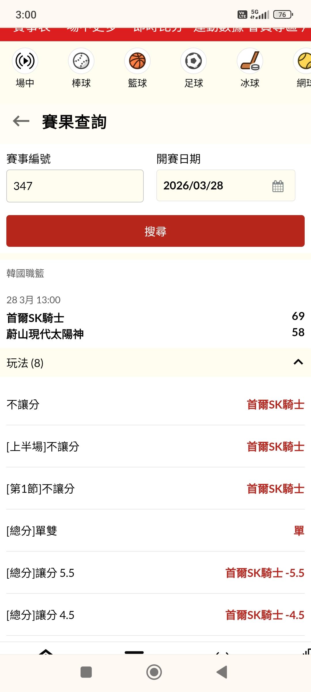 賽事結果查詢