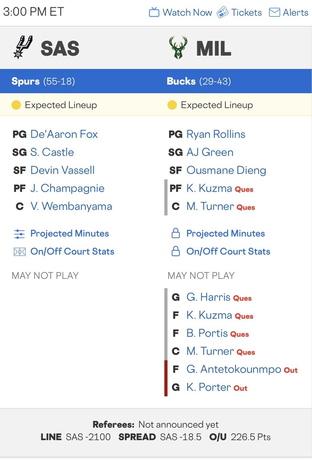 >> 最近強隊打弱隊分差動不動就開到讓20,明天公鹿沒字母哥,讓分應該開到讓20以上吧?
