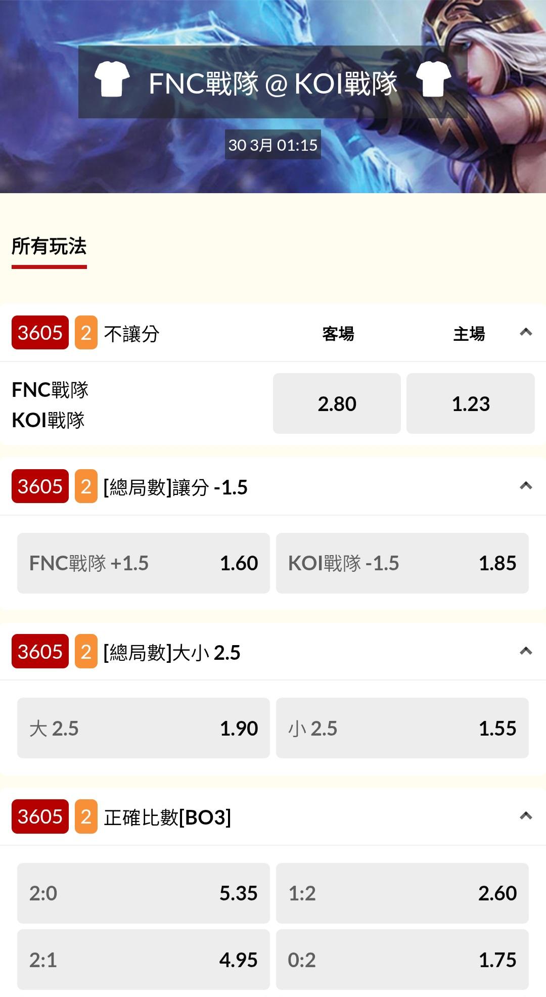 電競 >> 03/29『TH異教徒 @ SK戰隊』『FNC戰隊 @ KOI戰隊』
