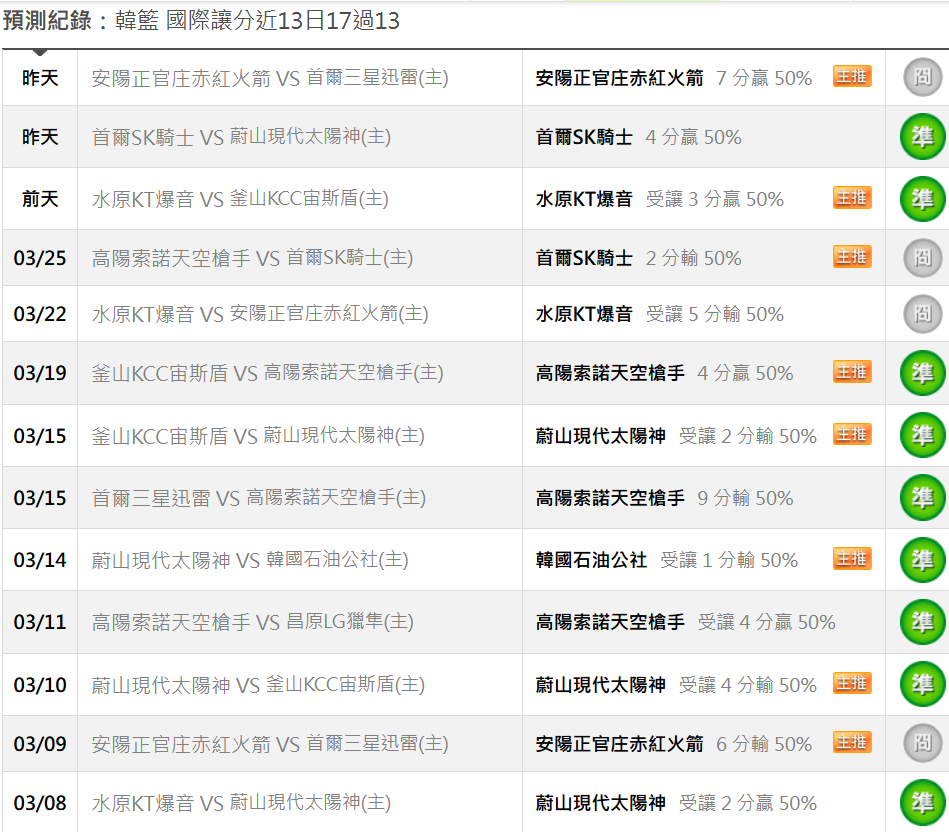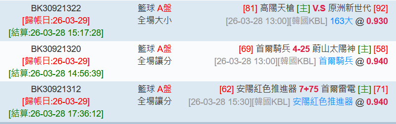 韓國職籃 >> 3/29【國際3過2】【國際 主推近12過9】初盤分享+小分推薦!
