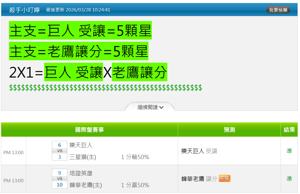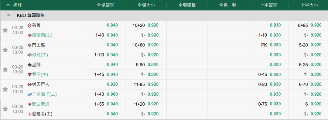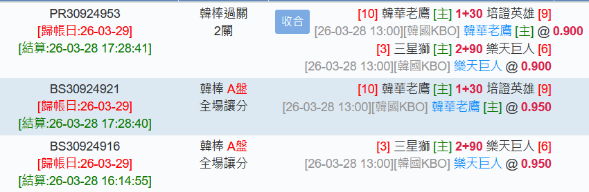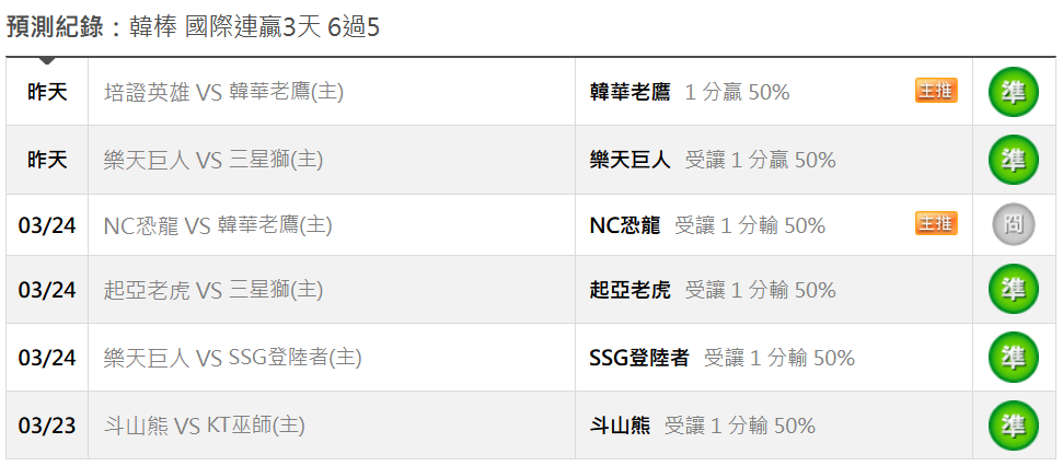 韓國職棒 >> 3/29【國際 連贏3天 6過5】【雙主推全過】【小叮嚀2X1過關】PK推薦!