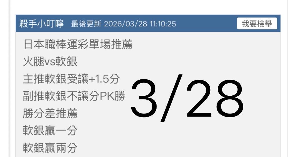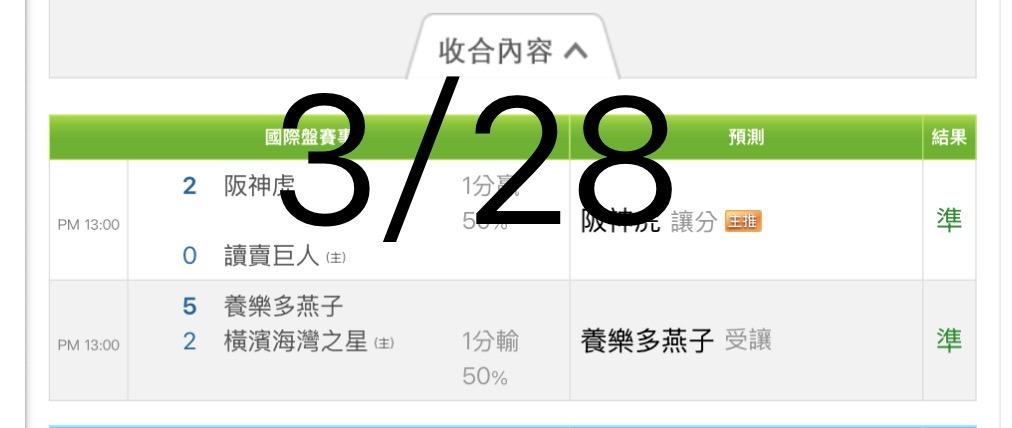 日本職棒 >> 3/29日棒國際主推近4過3 昨天國際2過2全過 小叮嚀推薦單場:軟銀受讓+PK+贏兩分都抓到特價