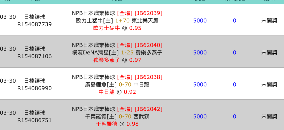 日本職棒 >> 日棒4場分享 🈶🈴參考 倒了勿炮