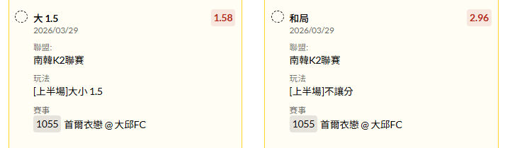足球 >> 周日下午場