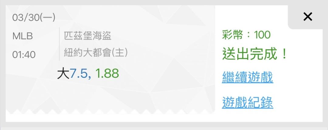 MLB >> 3/30 運彩主推4連勝 國際主推近13過10 今天3過3全轟 免費一場給各位~