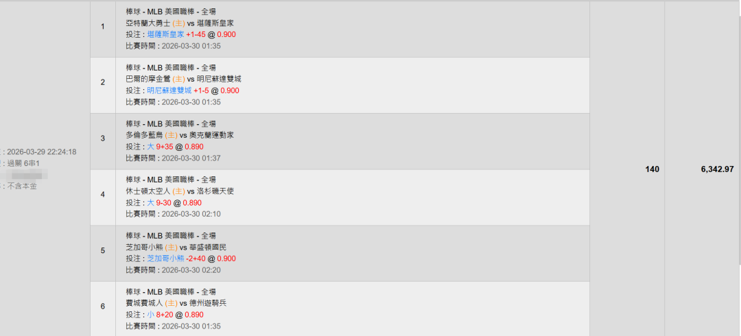 MLB >> 3/30 MLB 6*1 分享!!!!