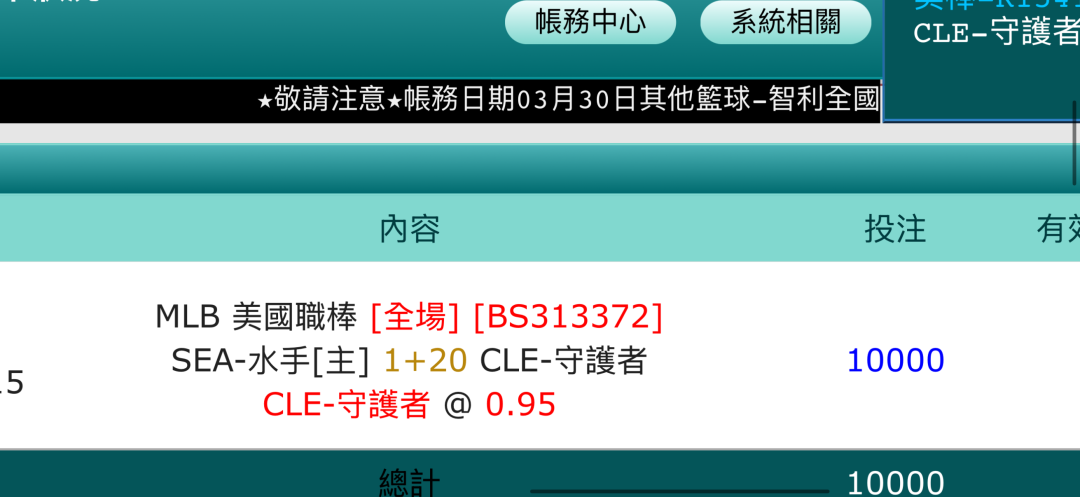 MLB >> 美棒大串燒 5注 獨贏倍數