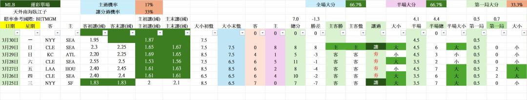 >> 3/31 MLB 運彩單場 NYY vs SEA