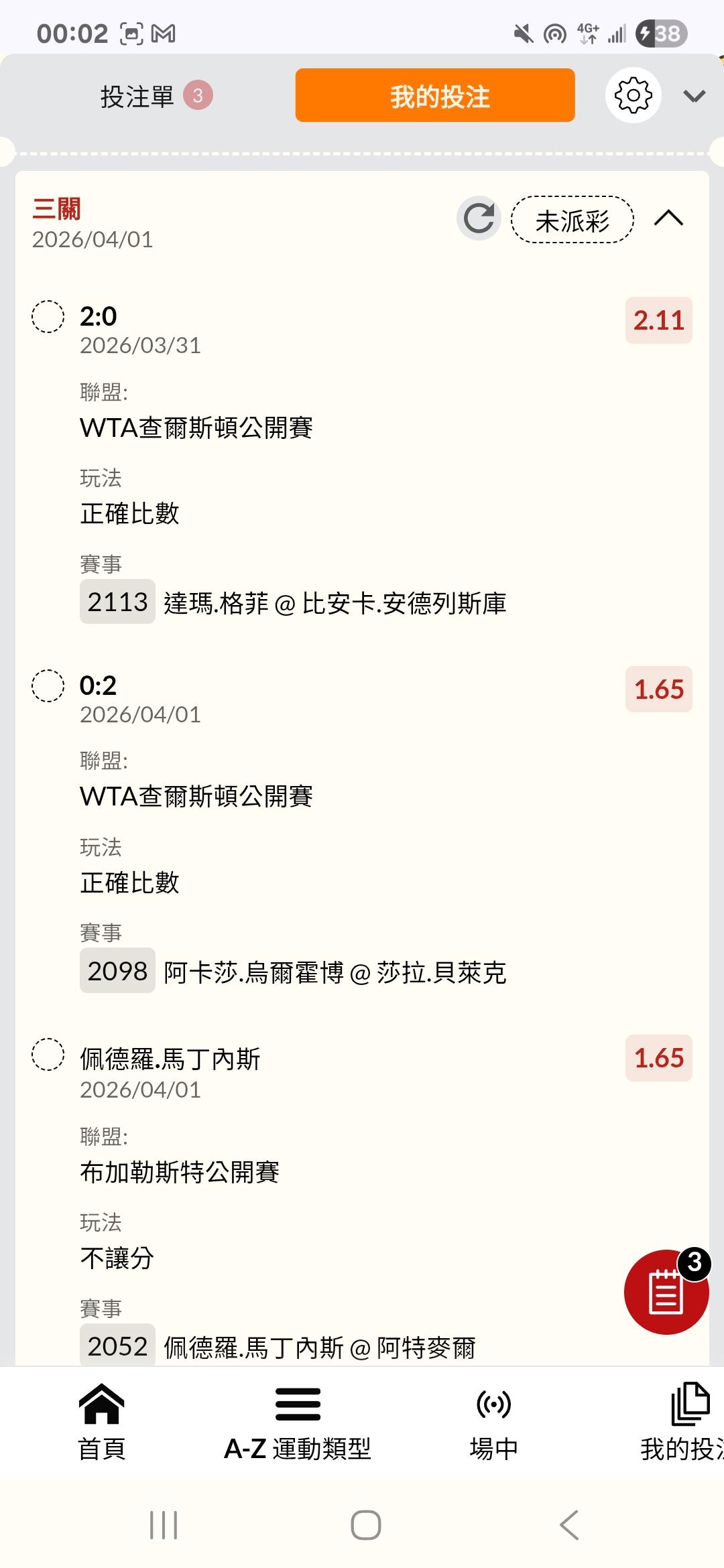 網球 >> 3/31 ATP、WTA 網球公開賽