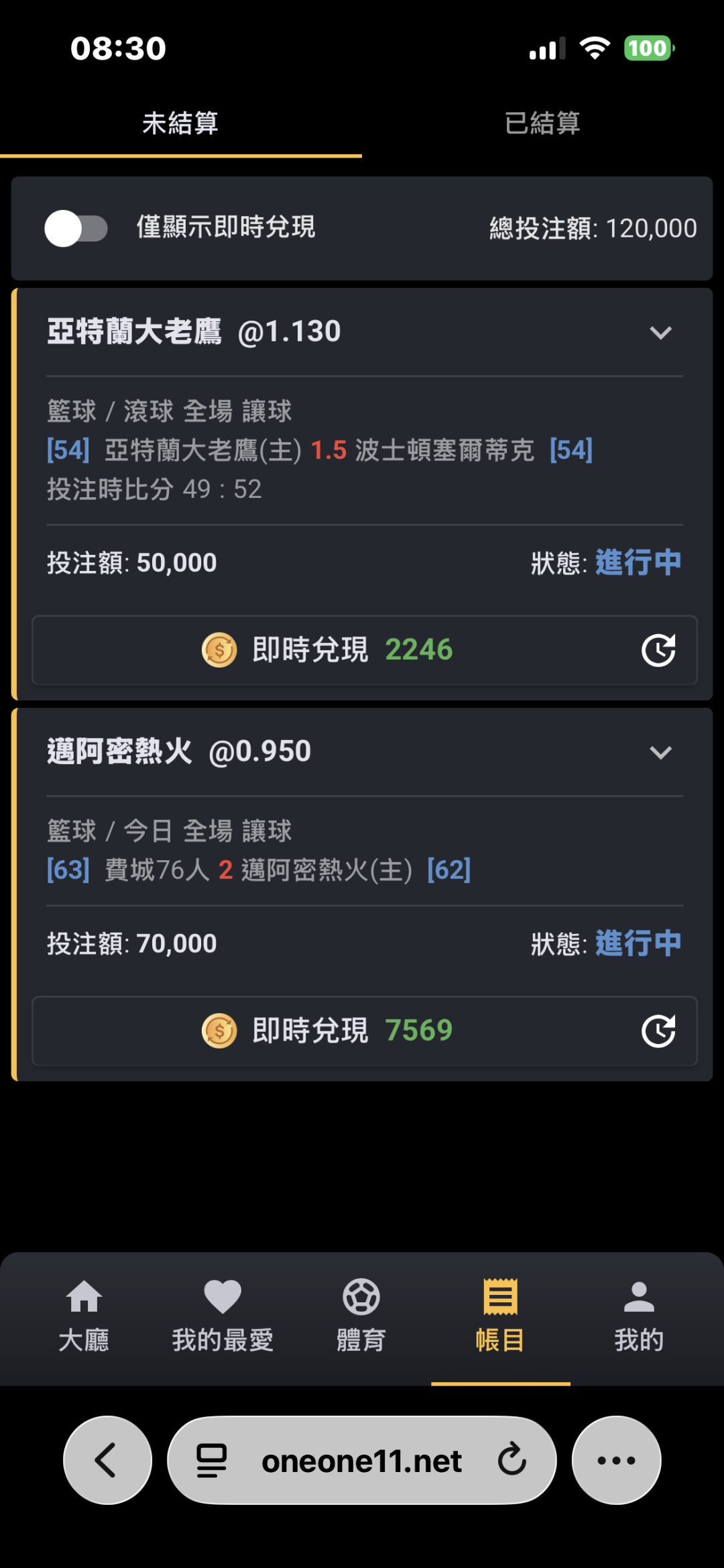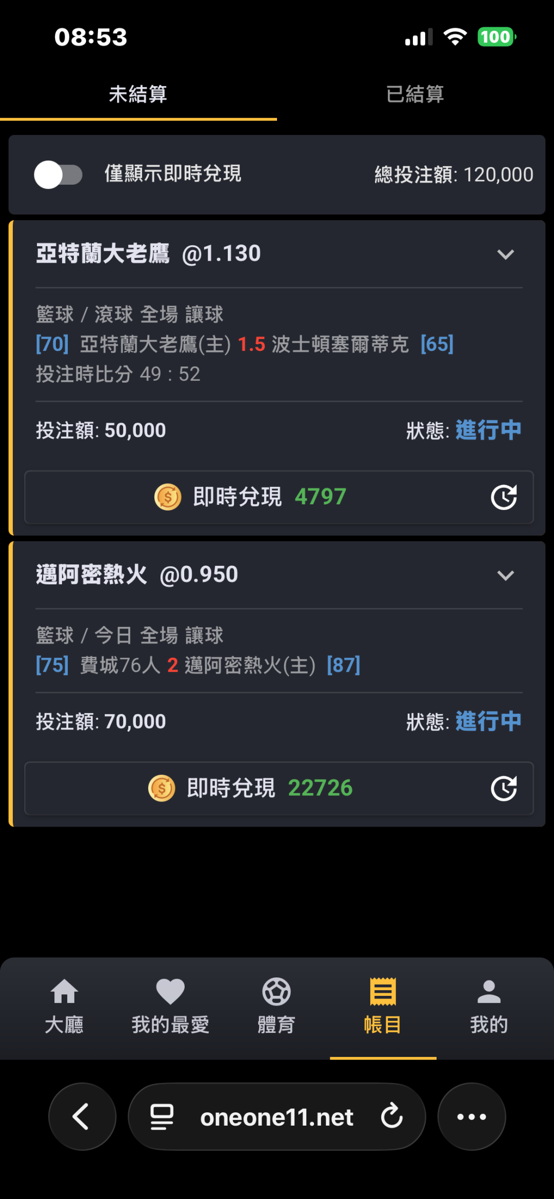 NBA >> 熱火老鷹 輸贏12w