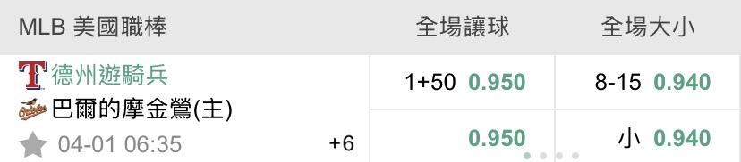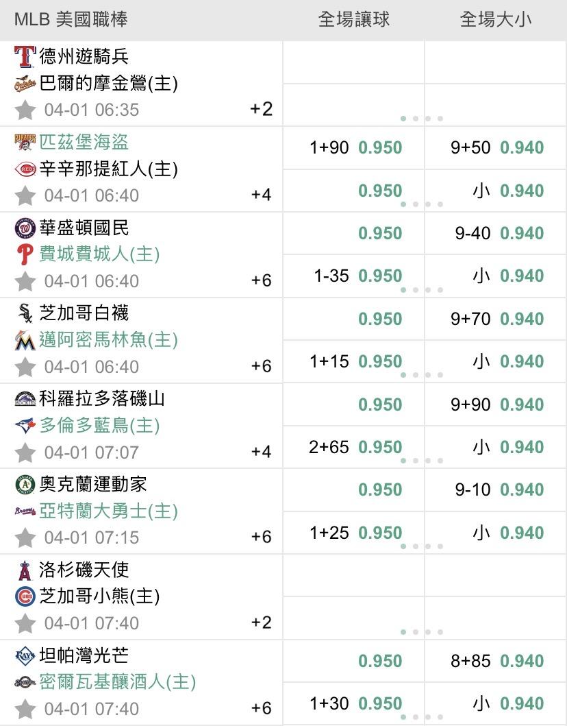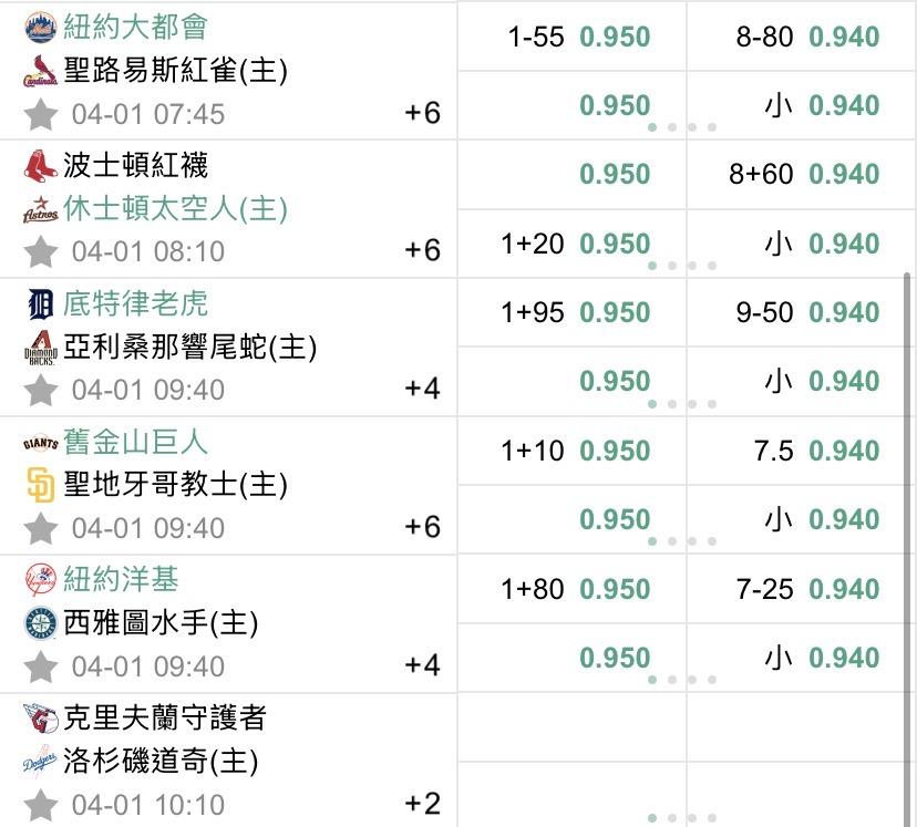 MLB >> 4/1 美棒初盤(預祝過盤)